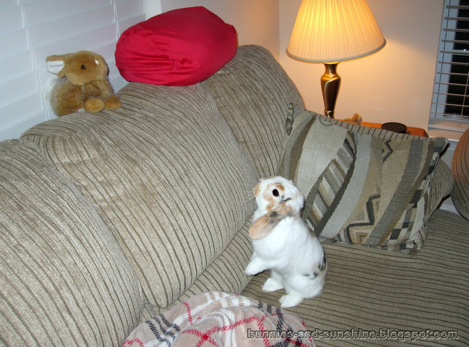 Simon can't just lie down like a normal bunny on the couch. He has to get a running start and crash head-first into the cushions in the most overly dramatic lop flop possible. I'm amazed that he didn't bounce with the force he threw into it. Bunnies take comfort seriously.