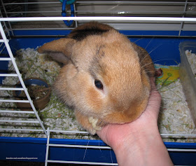 What I find funny is that River seems to be a bit jealous of the lack of constant Simon attention that she had prior to the neuter (considering that she'd ignore him about 70% of the time, who would've guessed that she actually craved the constant adoration he heaped upon her). Whenever she sees Simon licking my hand, she takes the initiative to try to gain my attention by mimicking Simon so I end up being tag-teamed by bunnies--one hand holding one of them up and the other through the bars of the other's cage to prevent them from flipping their litter box. She's even starting to lick at my hand after I scoop her front paws up and give her the hand signal for "no" for trying to flip the litter box. They're turning it into a game of sibling rivalry for who can get more of the female human's attention (as though I don't always immediately go over to their sibling's cage to give them a noogie after petting the other one). Never a dull moment with these two!